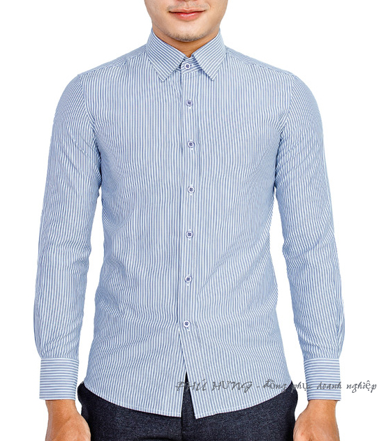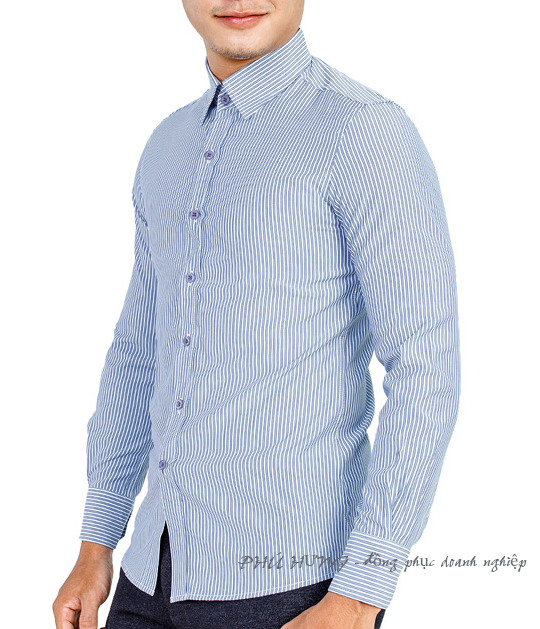 Luôn hướng đến tiếp cận phong cách thời trang mới, chiếc áo này được thiết kế trẻ trung với kiểu áo sơ mi tay dài, form dáng chuẩn, phối kẻ sọc trắng và xanh dương đậm.